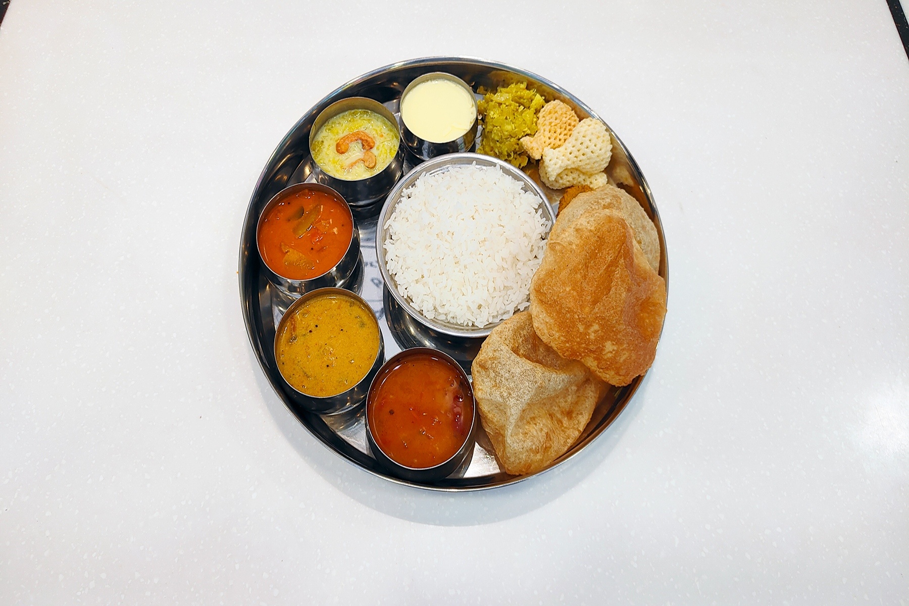 North Indian and South Indian lunches offer a rich contrast of flavors and traditions. North Indian meals are hearty, featuring rotis, naan, rich gravies, and fragrant rice, while South Indian lunches are wholesome with rice, sambar, rasam, curries, and curd, served with comforting simplicity.